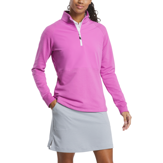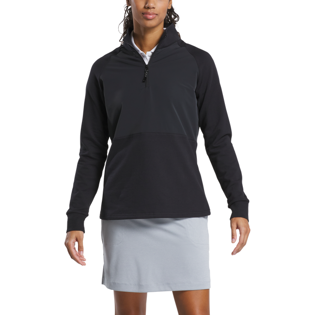 Women’s mid-layers are versatile pieces that allow the player to adapt to changing weather conditions. The four-way stretch fabric helps keep your core warm while allowing free range of motion throughout the golf swing.