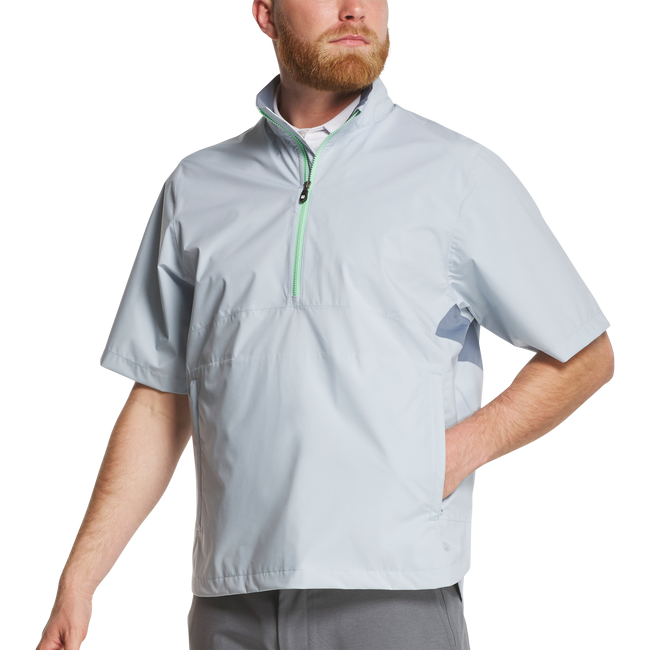 FJ HydroLite X short sleeve rain golf shirts are designed for warmer playing conditions with specifically placed knit panels in arms and back for increased movement and flexibility in the golf swing. Make Every Day Playable with Tour-Proven FJ Golf Outerwear.