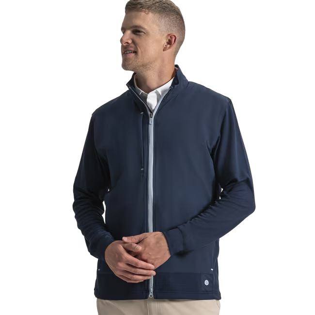 2-WAY ZIPPER A tailored look that allows easy adjustment for putting comfort and unrestricted movement.