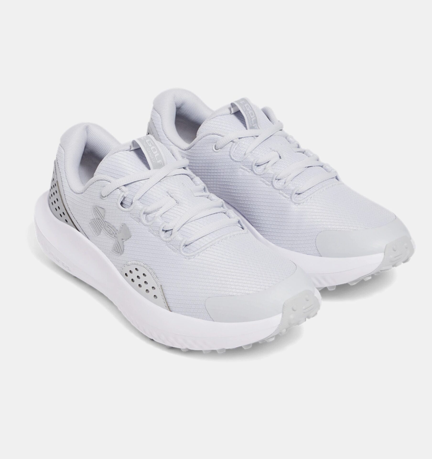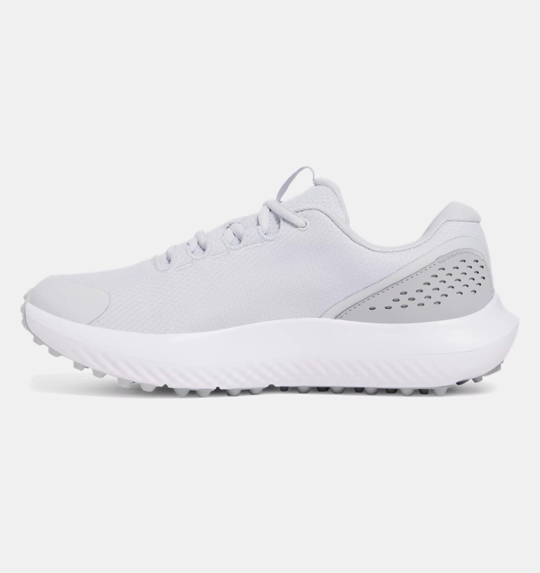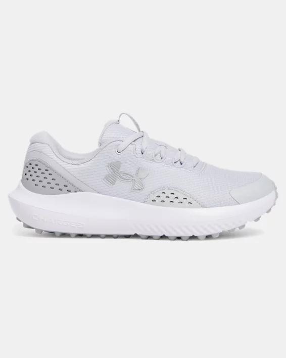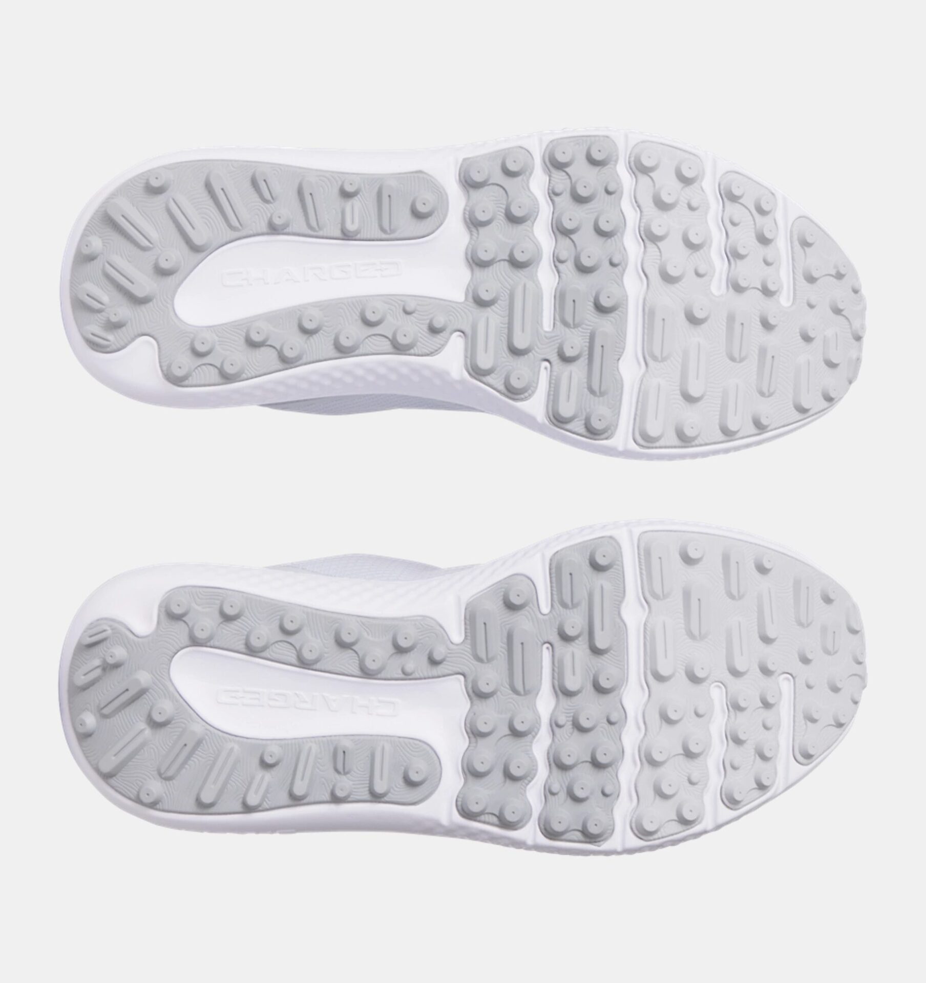 Golf shoes that keep your feet comfortable to keep you focused. The upper is light but durable, the Charged Cushioning® absorbs impact, and the Never-Wet treatment keeps you dry.